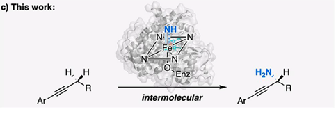 该研究利用P450酶作为催化剂,实现了以羟胺化物PivONH3作为氮烯前体对炔烃进行对映选择性炔丙基胺化。